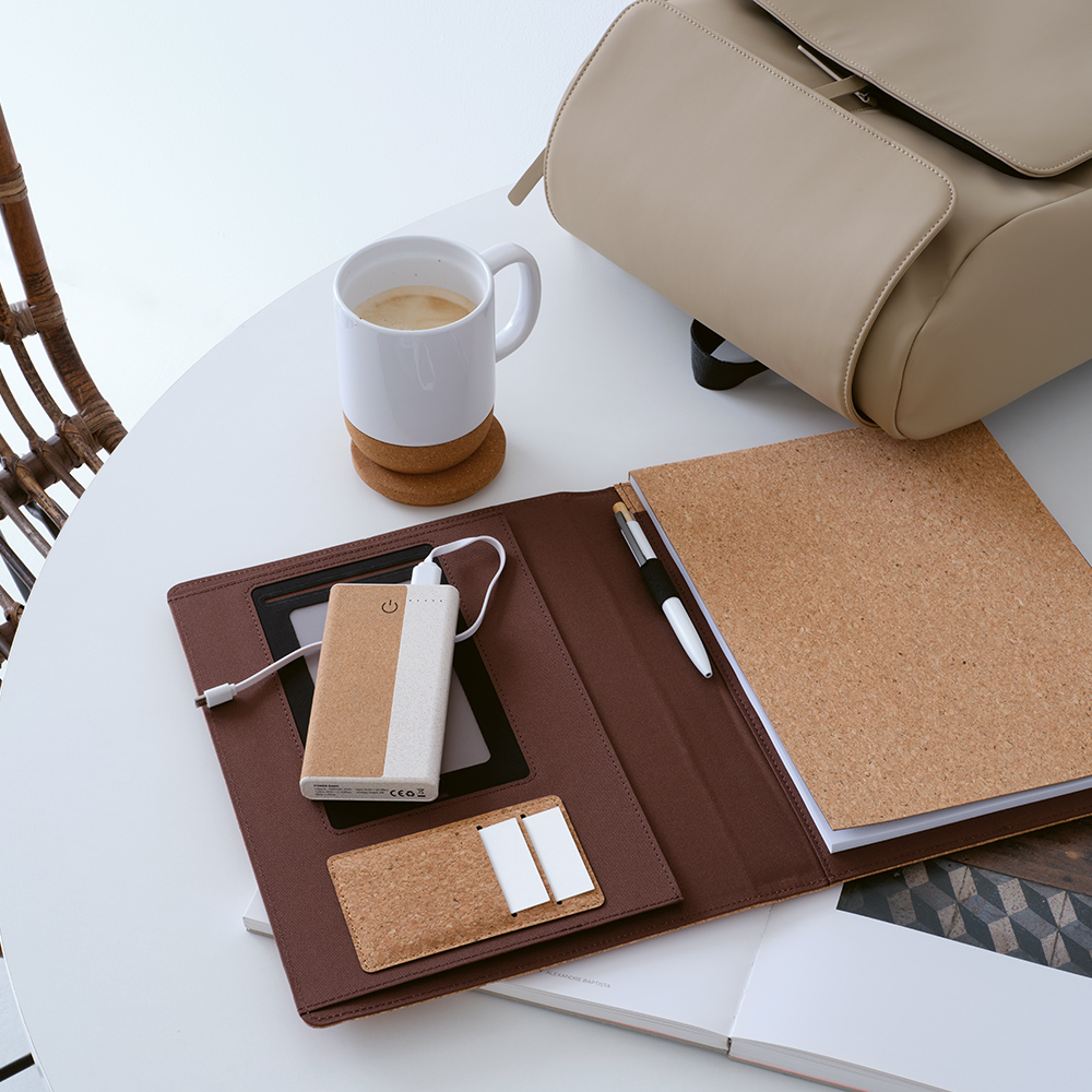 Akupank 10000 mAh 10.5 W on valmistatud korgist ja nisuõlest, pakkudes 10.5 W juhtmega ja 15 W juhtmevaba laadimist ning mitut porti (USB-C/USB-A/micro-USB).