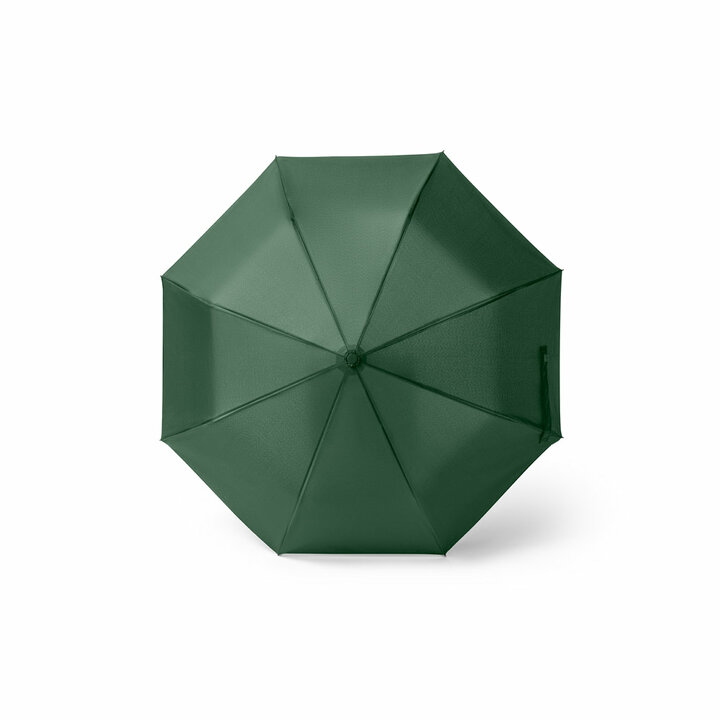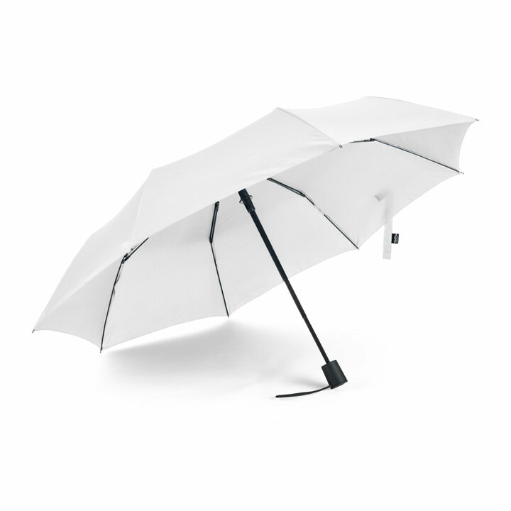 21” foldable umbrella made from 190T pongee fabric with recycled polyester (100% rPET). It features fibreglass ribs, a metal shaft, and a handle made from 35% recycled ABS. The umbrella is automatic, windproof, and foldable into 3 sections. It comes with a recycled polyester shopping bag (RPET), which can be used to store the umbrella or used separately.