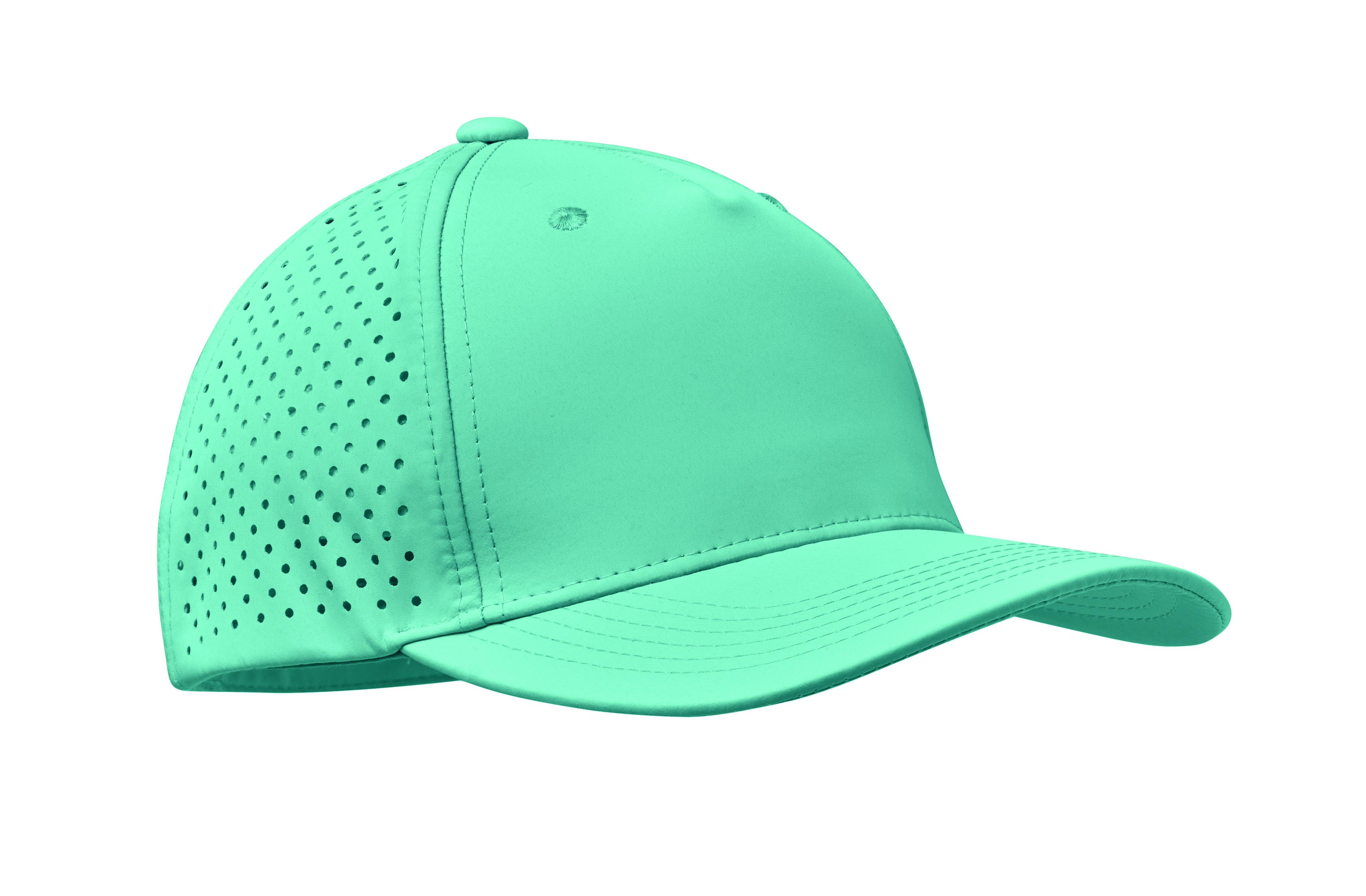 The cap 5 panel is a quick-dry polyester performance cap with laser perforation and sweat resistance. 130 g/m².