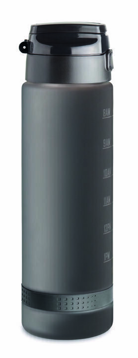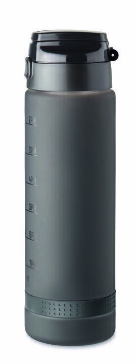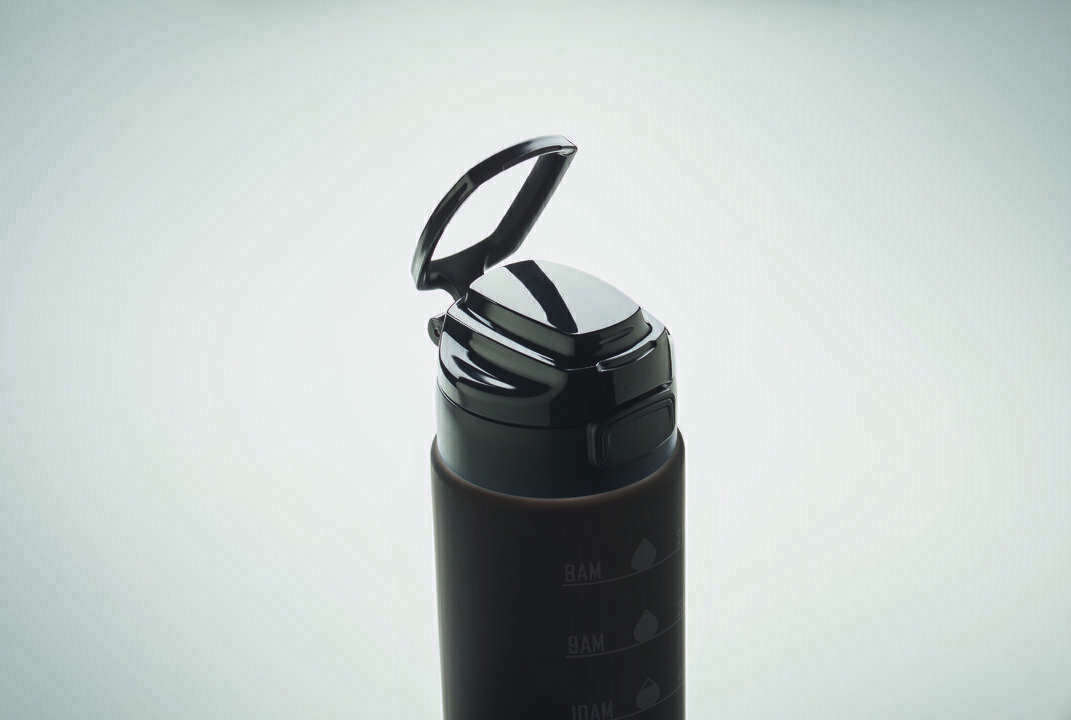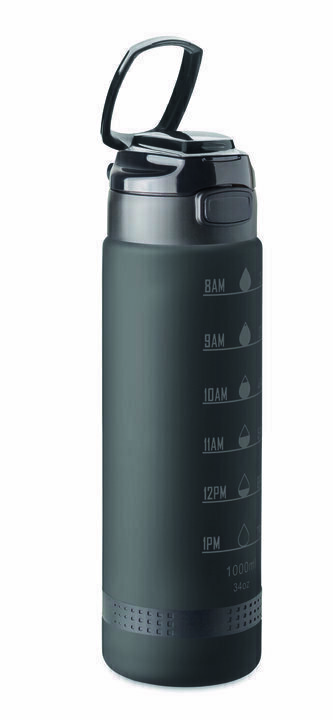 Joogipudel 1000 ml on valmistatud RPET-materjalist ning sellel on motiveerivad märgistused, flip-top kaas lukuga ja kandesang.