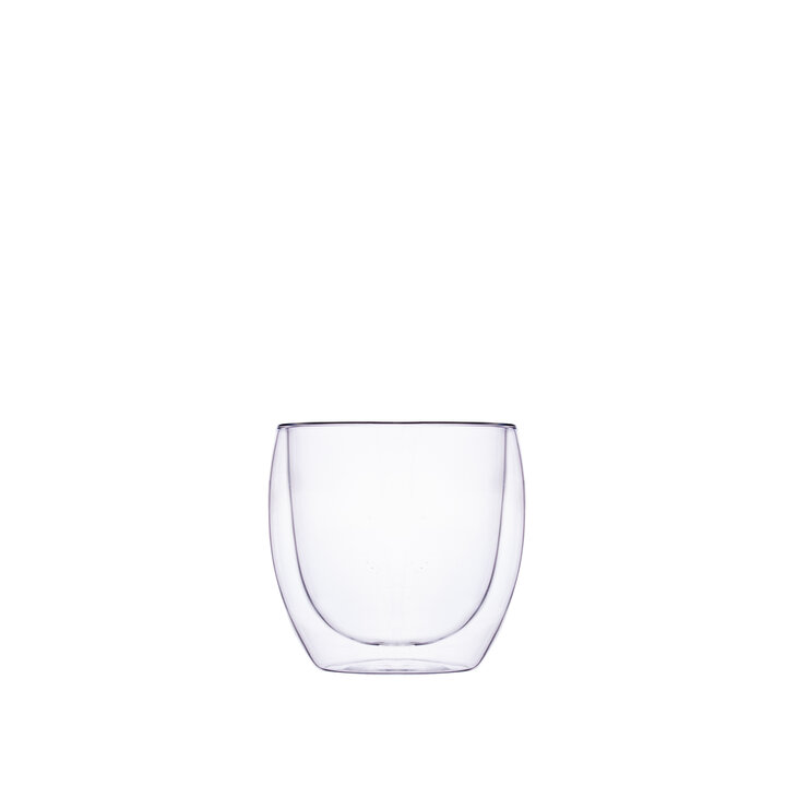 Kahekihiline kerge klaasist kruus ilma sangata.
