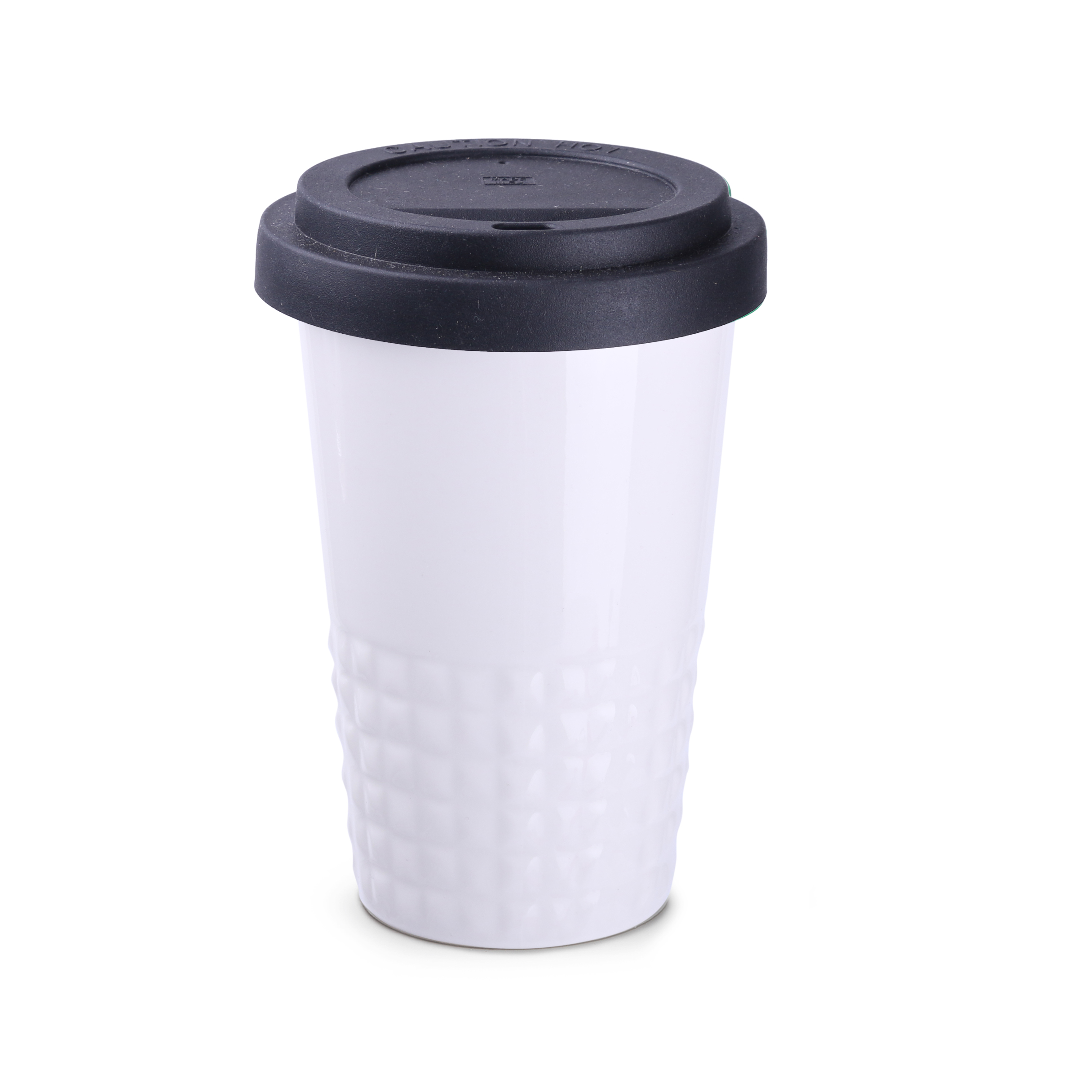 Portselanist topeltseinaga kohvitops kaanega, tänu millele ei jahtu kohv kiiresti maha. Kohvitopsi alumises osas on sümmeetrilised disainelemendid.