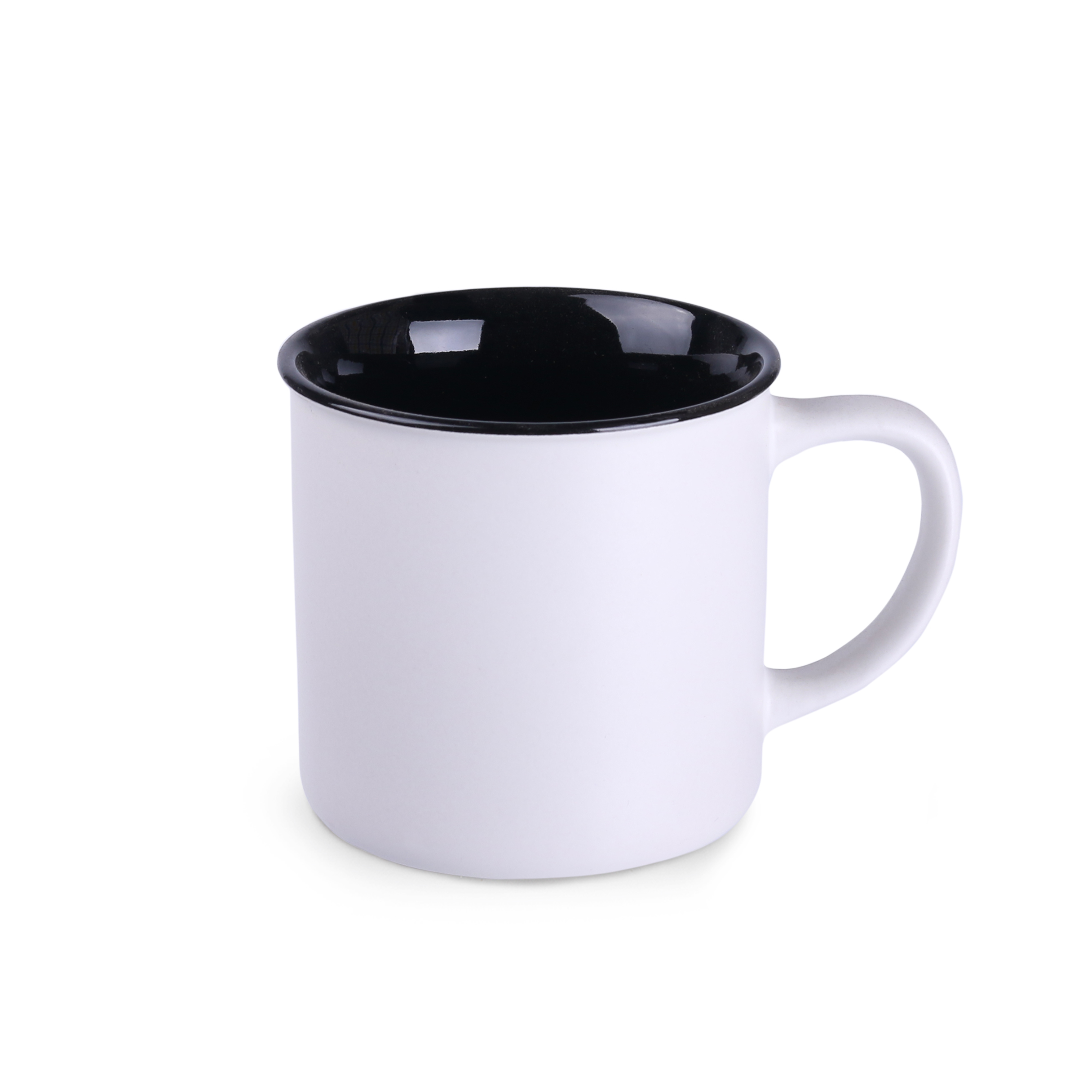 Kruus, mille välimine külg on matt valge ja sisu värviline läikiv.
