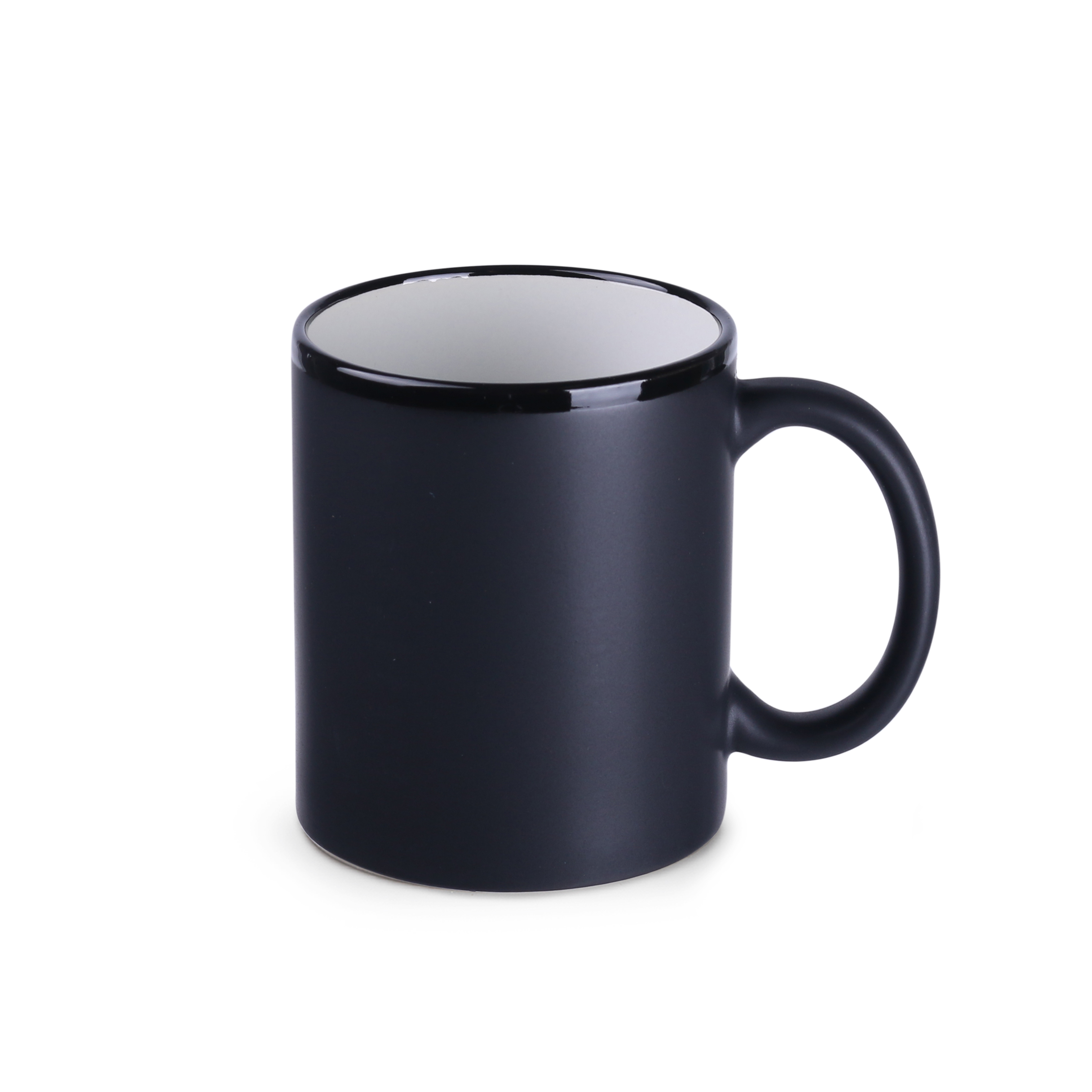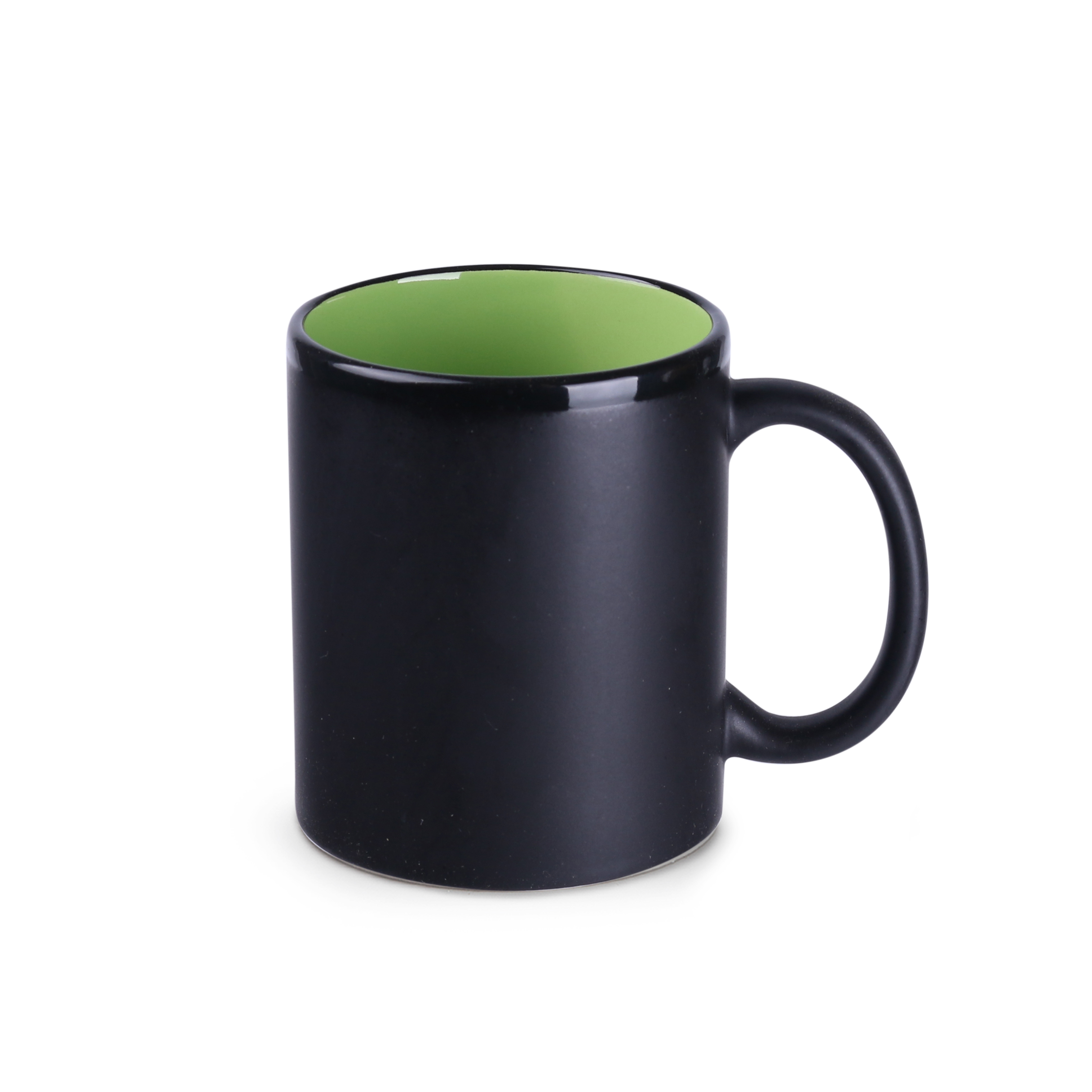 Kruus, mille välimine külg on matt must ja sisemine külg värviline.