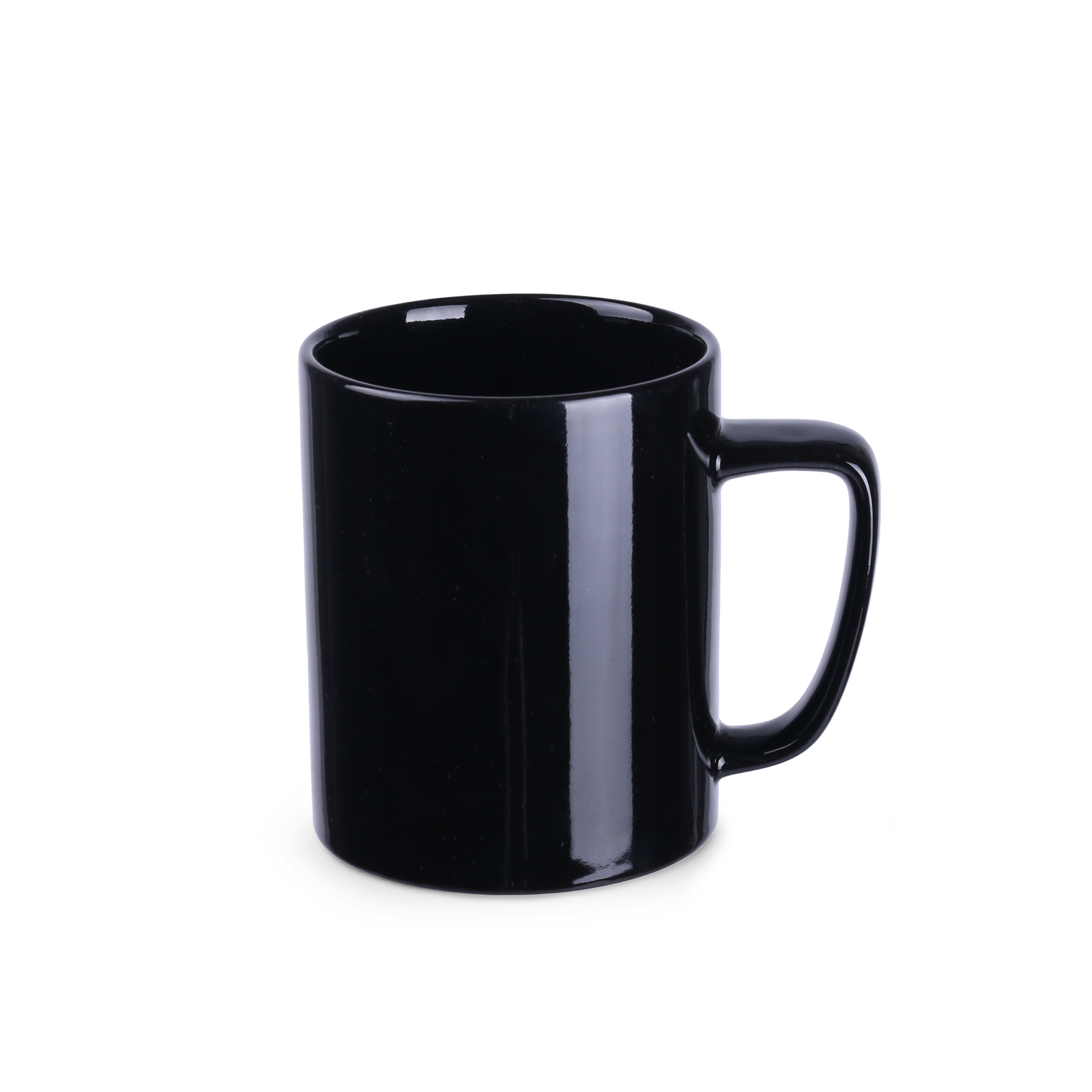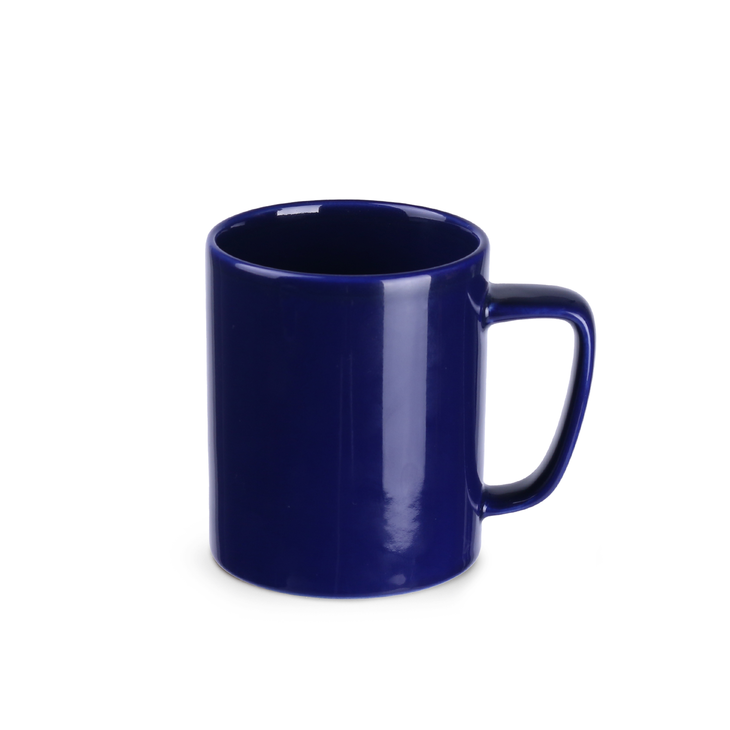 Kruus, mille välimine külg on läikiv värviline või valge ja sisu on valge, kruusil on omapärase kujuga sang.