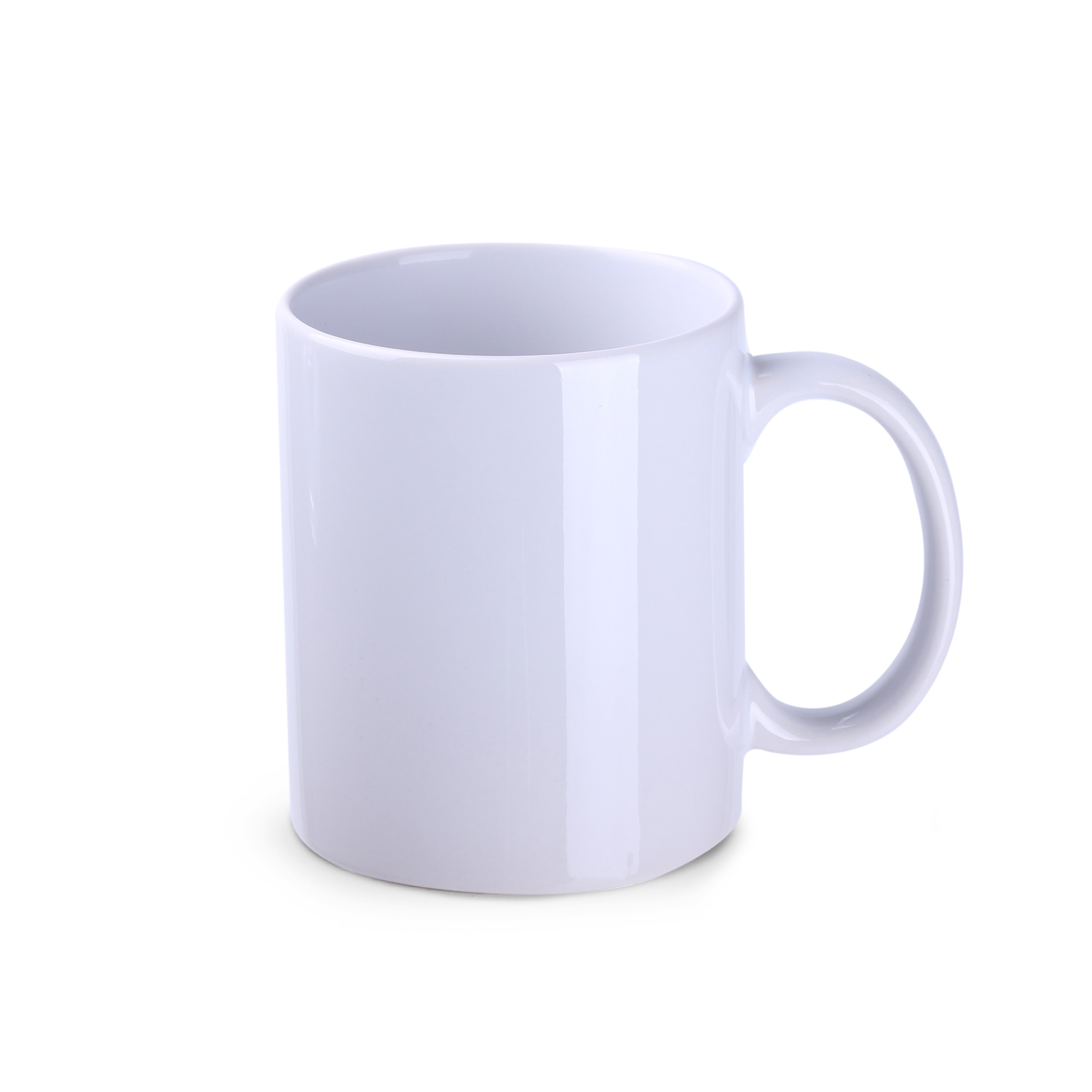 Valge klassikalise kujuga kruus, mille sisu on värviline ning millele saab trükkida foto või pildi.