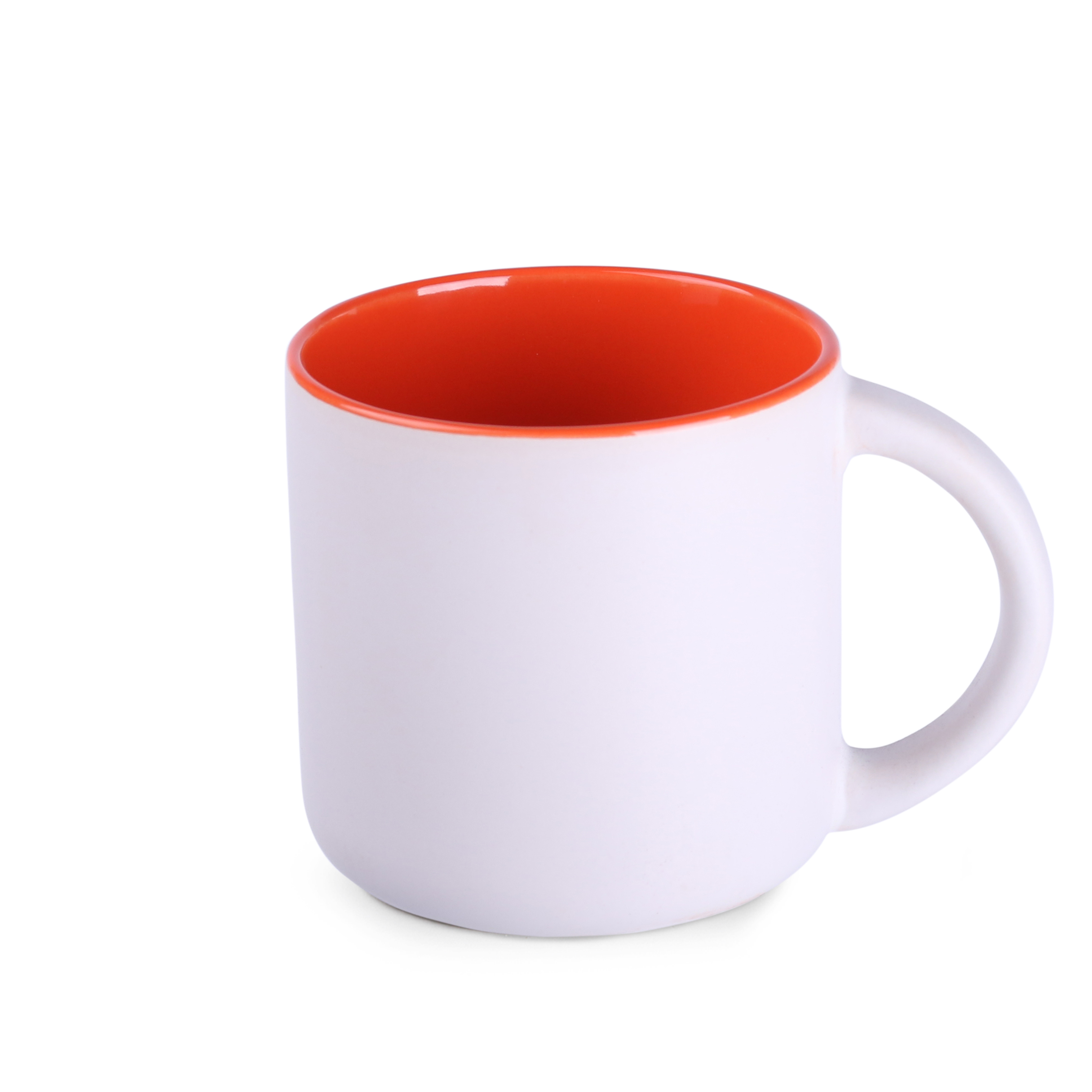 Kruus, mille välimine külg on matt valge ja sisemine külg värviline.