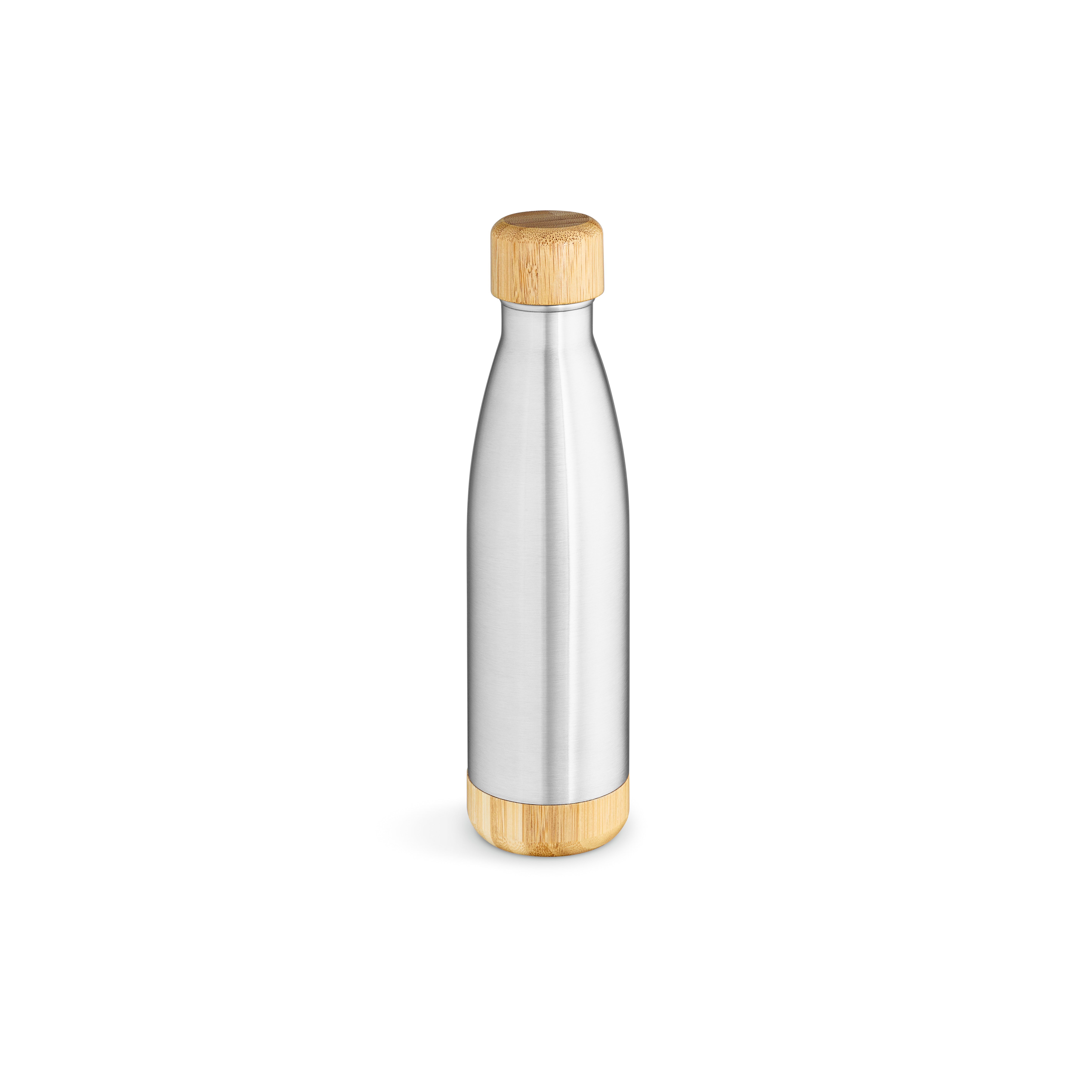 Termo Joogipudel 530 ml on valmistatud roostevabast terasest, topeltseinaga isolatsiooniga ning bambusest detailidega korgil ja põhjal. See on pestav nõudepesumasinas ja lekkekindel.