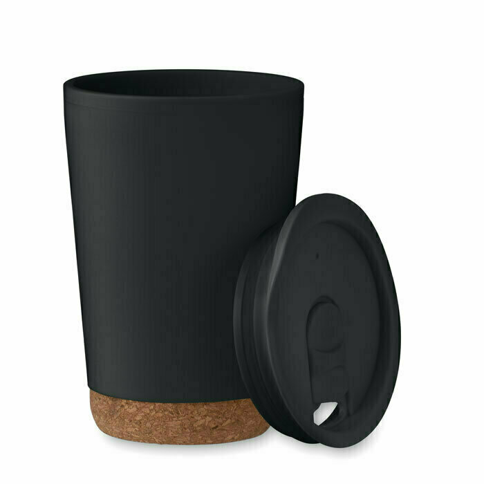Termokruus 300 ml on topeltseintega, korgipõhjaga ja liugkaanega, pakkudes soojustust ja mugavust.