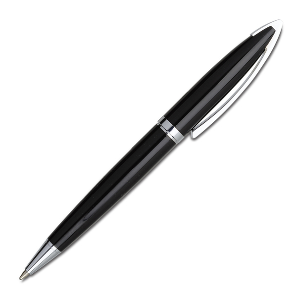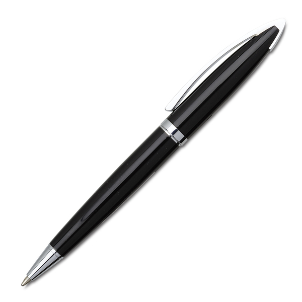 Elegantne metallist pasta- ja tindipliiatsi komplekt. Pastapliiats avaneb pööramisel ning kirjutusvahenditel on sinine tint. Pakitud kinkekarpi.