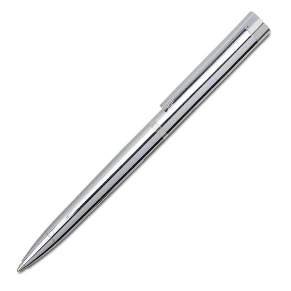 Stiilselt klassikaline metallist pasta- ja tindipliiatsi komplekt. Pastapliiats avaneb pööramisel ning kirjutusvahenditel on sinine tint. Pakitud kinkekarpi.