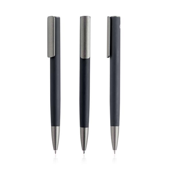 Rubal-pastapliiats on valmistatud ümbertöödeldud alumiiniumist ning sellel on pehme kummine viimistlus, moodne disain, sinine tint ja ümar klamber – jätkusuutlik valik kirjutamiseks.