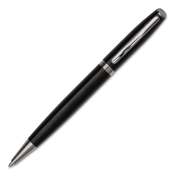 Taaskasutatud alumiiniumist valmistatud pastapliiats. Pastapliiatsil on hõbedased läikivad detailid ja sinine tint.