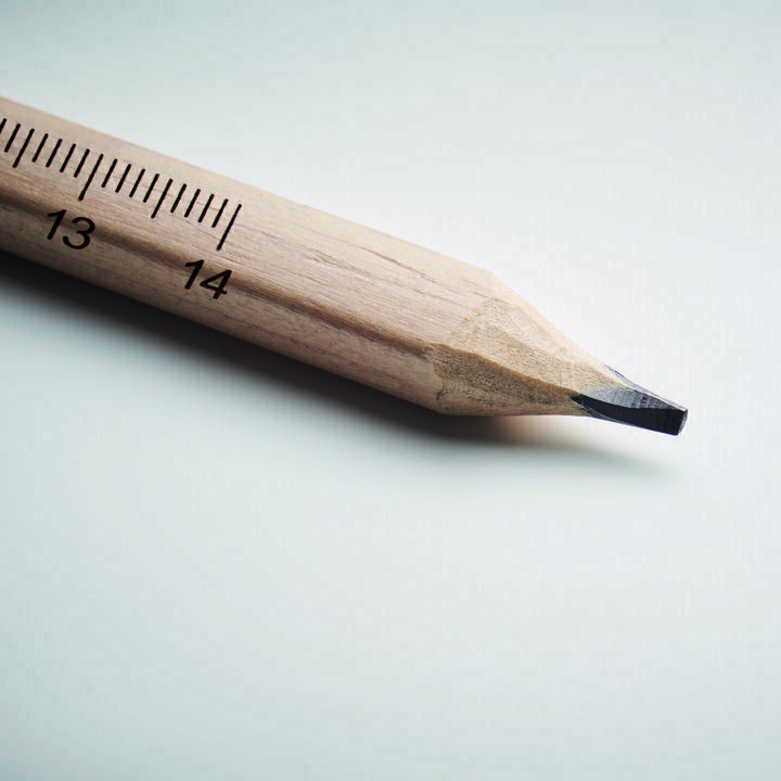 Puusepa pliiats on puidust ja sellel on ühel küljel trükitud 14 cm joonlaud.