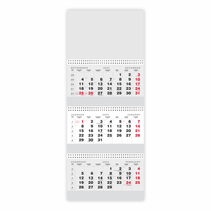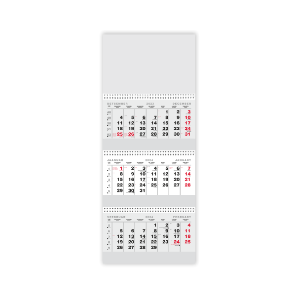 Seinakalender TRIO MAXI on kolme nähtava kuuga spiraalköites kalender. Spiraalköide on iga kuu vahel, mis võimaldab kalendrit hõlpsasti kokku voltida. Kalendaariumi küljes on punast värvi kuupäevamärkija. Kalendri ülaosas on veidi A4 suuruses suurem trükiala reklaampildi jaoks ning iga kuu allääres 6 cm kõrgune riba reklaamtekstide jaoks.