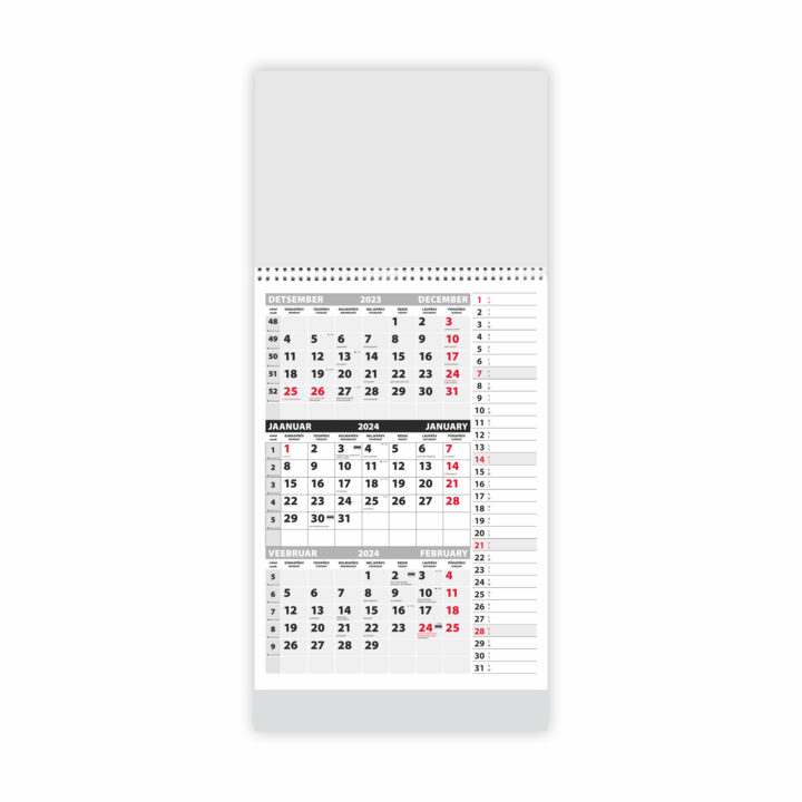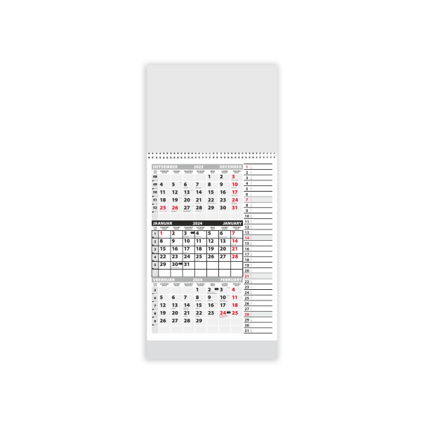 Seinakalender TRIO MEMO on kolme nähtava kuuga spiraalköites kalender. Kalendaariumi küljes on punast värvi kuupäevamärkija. Kalendri ülaosas on A4 suuruses trükiala reklaampildi jaoks ning allääres 6 cm kõrgune riba reklaamtekstide jaoks. MEMO eripäraks on kalendri parempoolses ääres olev märkmete lahter.