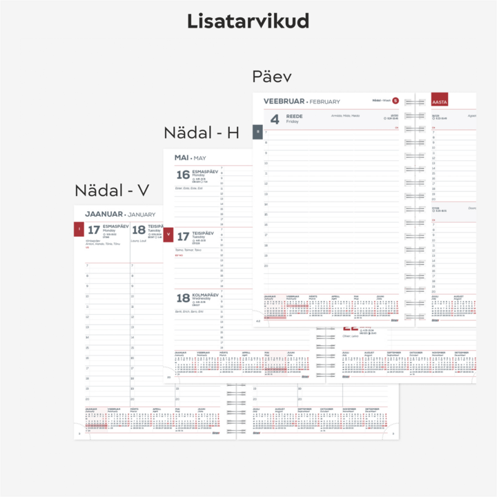Erand: kalendaariumi ‘päev’ puhul on märkmiku paksus 2.5 cm, kaal on 520 g ja lehekülgede arv on 532.