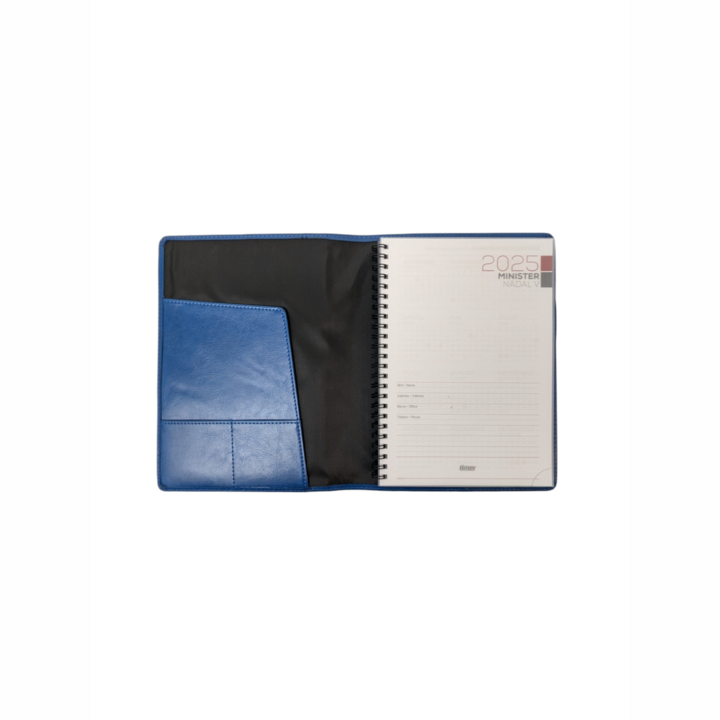Kalendermärkmik ‘minister’ on stiilne ja praktiline vahend igapäevaste ülesannete ning kohtumiste haldamiseks. Märkmiku kaane mõõdud on 17 × 22.5 cm ja sisu mõõdud 14.8 × 21 cm. Pehmendusega kunstnahast kaaned, millel on õmmeldud servad ja sisetaskud, lisavad märkmikule elegantset välimust ja praktilisust. Spiraalköites sisuplokk tagab lehtede sujuva keeramise, samas kui perforeeritud lehenurgad võimaldavad leida vajaliku lehe või see vajadusel puhtalt välja rebida. Ideaalne valik nii kontorisse kui isiklikuks kasutamiseks.