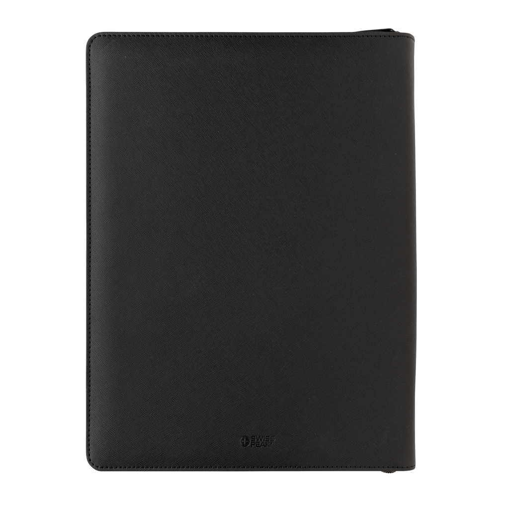 Swiss Peak Heritage kollektsiooni A4 suuruses elegantne konverentsikaust. Kaustal on Itaalia taaskasutatud vegan nahast pind ja tõmblukk. Sees on tahvelarvuti või telefoni alus, kummist aasad juhtmete jaoks, visiitkaartide taskud, taskud märkmete ja paberite hoidmiseks, pliiatsi aas ning 20-leheküljeline A4 kivipaberist märkmik. Valmistatud RCS-sertifikaadiga taaskasutatud materjalidest, mis moodustavad 9% eseme kogukaalust. PVC-vaba. Tootel on kaubamärgi ‘Swiss Peak’ logo.