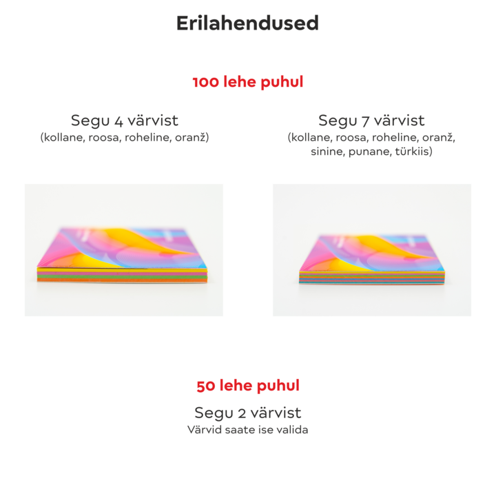 Staatilise elektriga märkmepaber, mis sobib erinevatele pindadele, jätmata jälgi. Trükk katab toote esi- ja tagakaane täielikult, nii sise- kui ka välisküljed, pakkudes täisulatusega kujundust. Viimistlusena saate valida mati või läikiva. Toode kinnitub pindadele nagu klaas, puit, metall, kivi, plastik ja muudele kuivadele materjalidel ilma liimi kasutamata, jättes pinna puhtaks. Toode on 100% ümbertöödeldav.