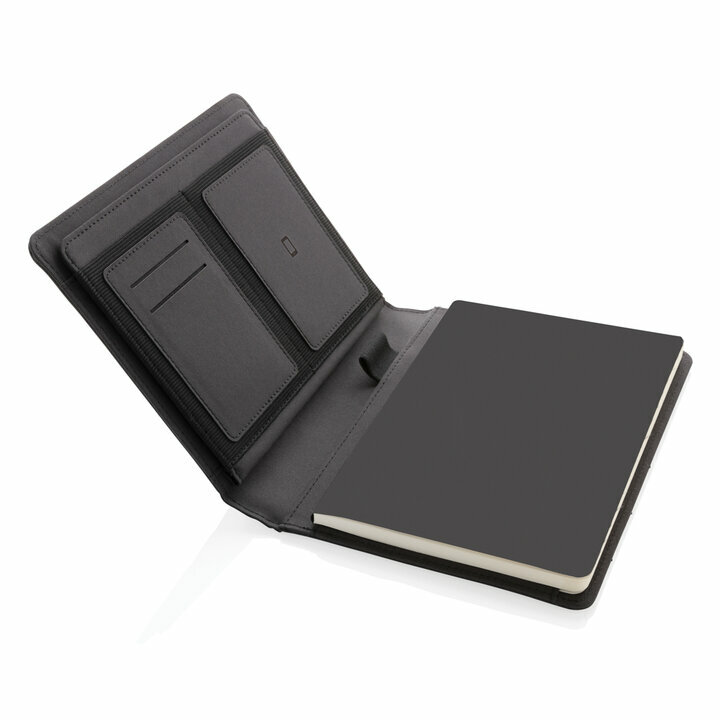 Kvaliteetne A5 suuruses märkmik-portfell, valmistatud ümbertöödeldud materjalidest. Portfelli sees on 1 suur tasku, 1 telefonitasku, 2 kaardipesa ja pliiatsihoidja. Komplekti kuulub FSC-sertifikaadiga taaskasutatud paberist märkmik, millel on 64 lehte/128 lehekülge kreemika tooniga 80 g/m² paberit. Portfelli sisemine ja välimine osa on valmistatud 100% taaskasutatud polüestrist ja tähistatud AWARE™ märgisega. PVC-vaba. Lisaks annetatakse 2% iga müüdud Impacti toote tulust Water.org-ile.