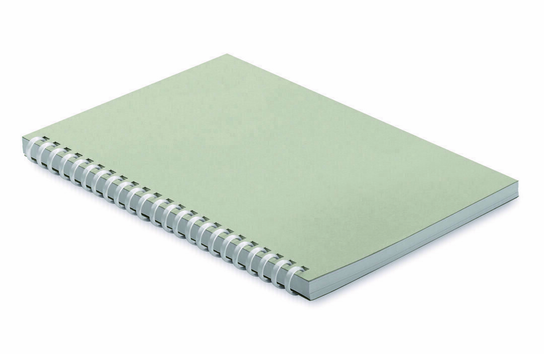 Märkmik A5 on pehme ümbertöödeldud kartongkaanega, rõngasköitega ja 160 joonelise leheküljega.