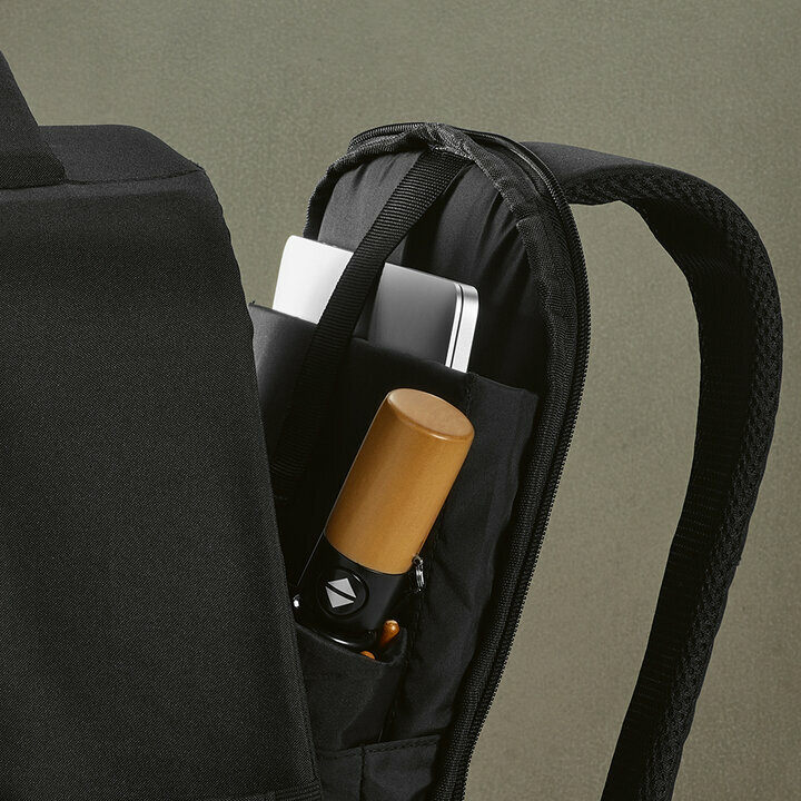Seljakott 17” ühendab mugavuse ja praktilisuse 16-liitrises rPET-disainis. Sellel on peidetud esitasku, pehmendatud seljatugi, troolirihm, tugevdatud sang ja reguleeritavad õlarihmad. Sees on pehmendusega sülearvutitasku ja diskreetsed küljetaskud pudelitele. Esitletud ümbertöödeldud puuvillakotis.