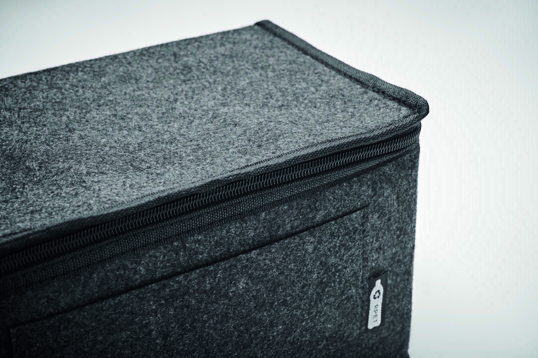 Termokott on valmistatud ümbertöödeldud vildist ning sellel on ees tasku. Alumiiniumkattega soojustus aitab hoida koti sisu soovitud temperatuuril.