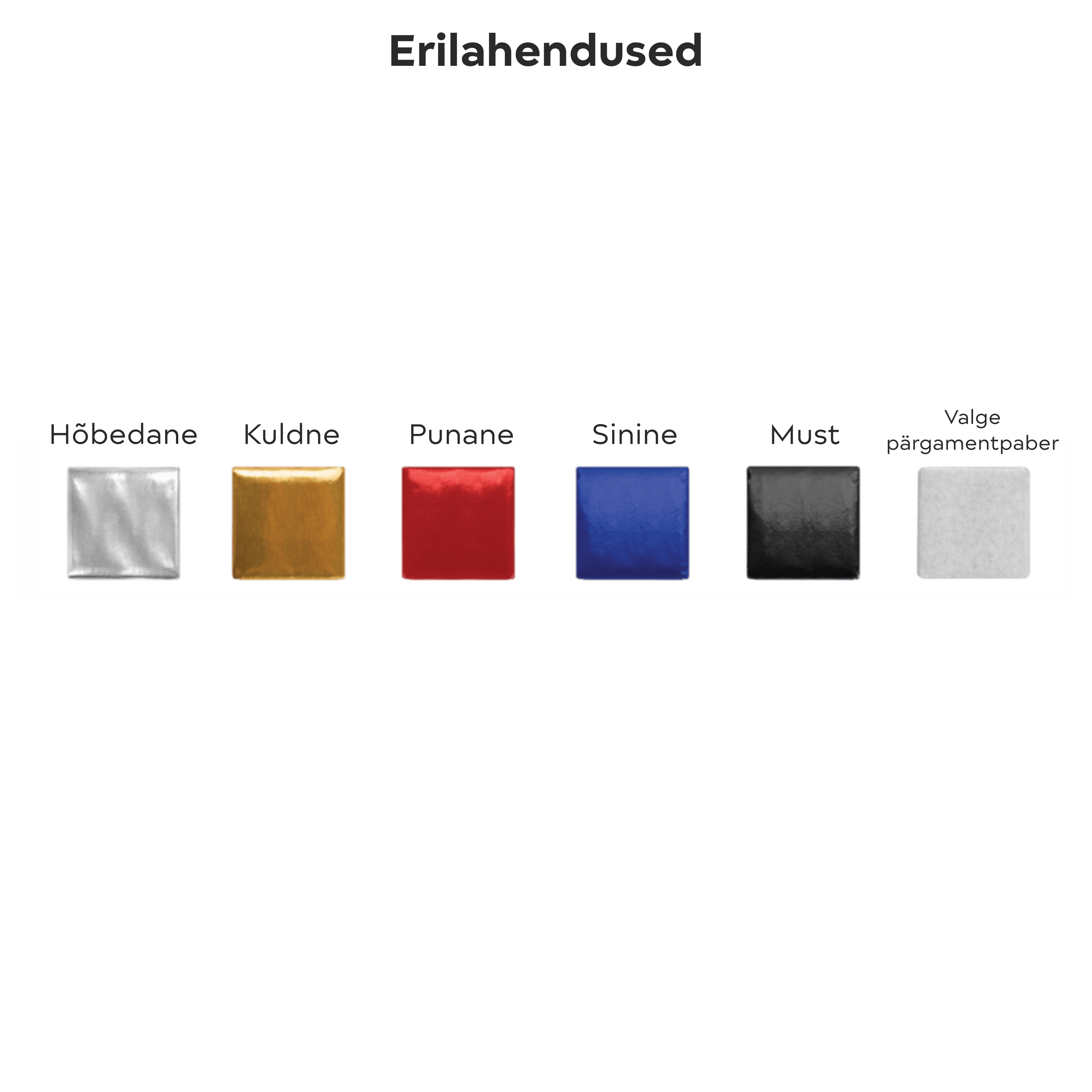 Erilahenduste valik on leitav piltidel, vaikimisi ‘hõbedane foolium’.