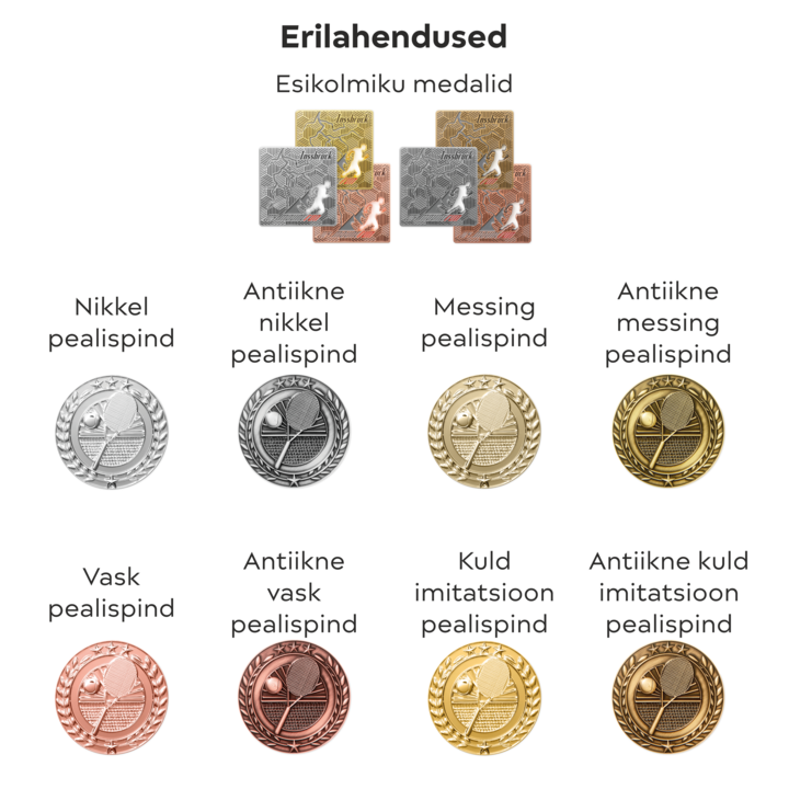 Erilahenduste valik on leitav piltidel – vaikimisi ‘nikkel pealispind’.