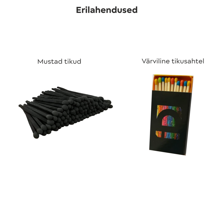 Erilahenduste valik on leitav piltidel (‘musta värvi tikkude’ puhul peab ka väävel olema musta värvi).