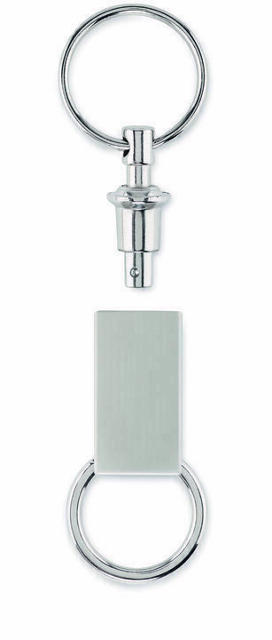 Võtmehoidja on tsingisulamist ja kaheosaline, sisaldades kahte eemaldatavat rõngast.
