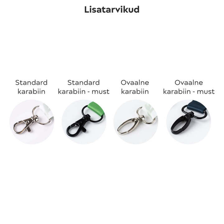 Ümbertöödeldud polüestrist võtmehoidja on toode, mida valmistame täielikult teie soovide järgi. Kohandamisvõimalused on järgmised: paela laius (‘vali suurus’ rippmenüü); trükkimine kas ühele küljele (vaikimisi) või mõlemale küljele (sellisel juhul valige ‘vali lisa trükivõimalus’ rippmenüüst). Pärast trükkimist õmmeldakse võtmehoidja kokku ning lisatakse soovitud kinnitus. Kinnitused saab valida ‘vali lisatarvik’ rippmenüüst ja valikuid saab näha piltidelt – vaikimisi on kasutusel ‘standard karabiin’.