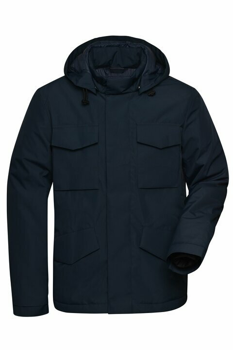 Tuule- ja veekindel meeste business-stiilis jope (5 000 mm veesammas) linnakeskkonda ja nutikaks vabaajaks. Sile pealispind ja sisemine tepinguviimistlus, soojustuseks sorona®AURA (taastuv, biopõhine sisu) – kerge ja soe. Hingavus 1 500 g/m²/24h aitab niiskust juhtida. Püstkrae ning reguleeritav, eemaldatav kapuuts pakuvad paindlikku kaitset; täispikkuses kaetud esilukk hoiab tuult eemal. Praktiline panipaik: 2 esitaskut, 2 pealõmmeldud rinnataskut ja 1 sisemine lukuga tasku. Elastsed sisemised varrikanted hoiavad soojuse sees. Seljal olev tõmblukk võimaldab mugavat juurdepääsu kaunistustele/brandingule. Kvaliteetsed YKK tõmblukud.