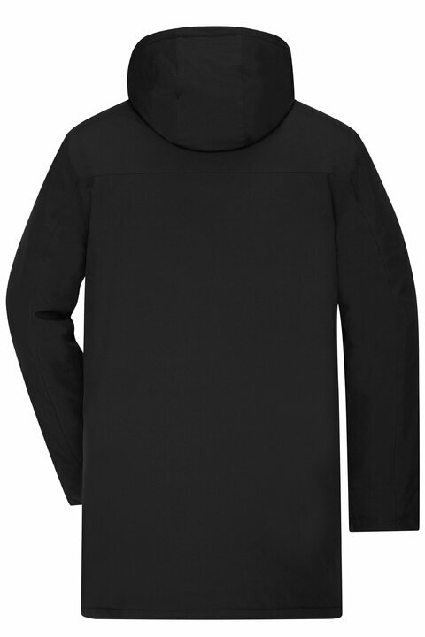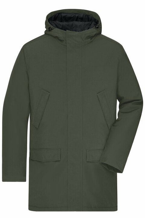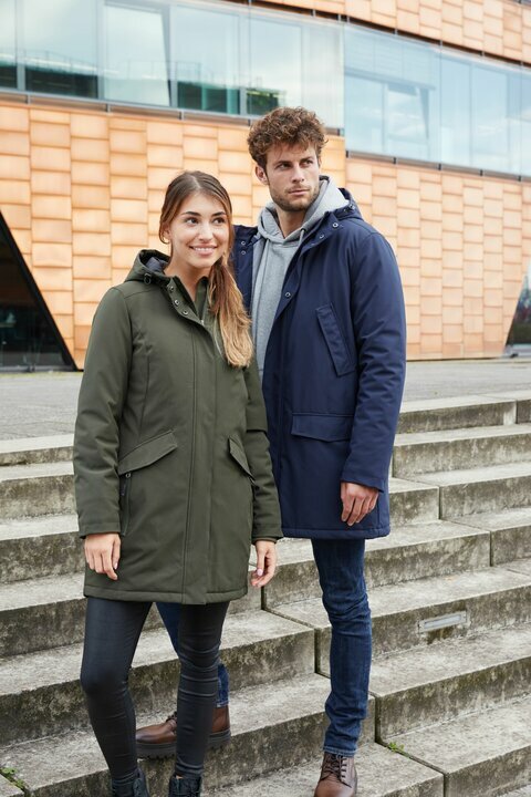 Tuule- ja veekindel meeste business-parka (5 000 mm veesammas), mis on loodud mugavaks linnaliikumiseks ja esinduslikuks välimuseks. Pealiskangas on taaskasutatud polüestri ja elastaani segu liikumisvabaduseks, vooder taaskasutatud polüestrist. Hingavus 2 000 g/m²/24h aitab niiskust juhtida. Soojuse annab sorona®AURA polster (taastuv, taimne tooraine). Kinnine, reguleeritav ja polsterdatud kapuuts, täispikkuses kahekohaline (2-suunaline) esilukk sisemise kaitsepaneeli ja trukkidega tormiklapiga hoiavad tuule ja niiskuse eemal. Taskuid jagub: 4 esimest taskut, 1 sisemine lukuga tasku ja suur sisetasku takjakinnitusega. Seljatõmblukk võimaldab mugavat juurdepääsu kaunistustele/brandingule. Kõik tõmblukud YKK.