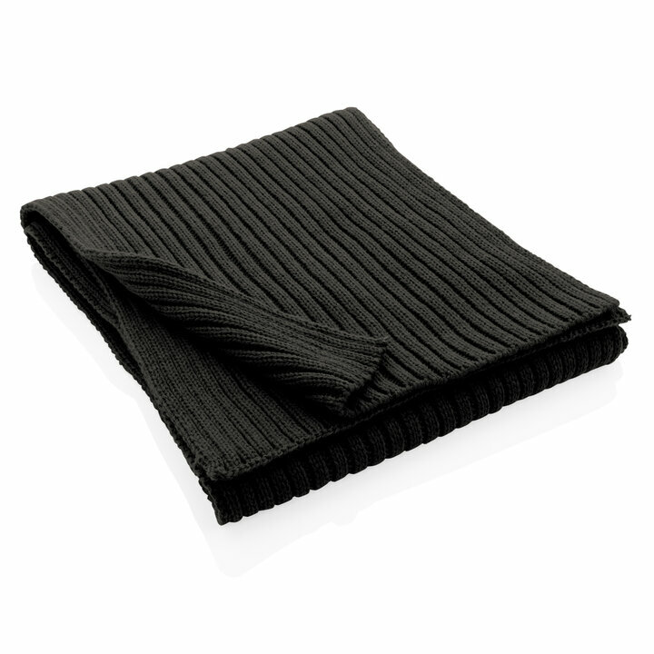 4-kihiline kootud sall, valmistatud Polylana® akrüülist – keskkonnasõbralikum alternatiiv 100% akrüülkiule, mis vajab vähem energiat ja vett. Sisaldab AWARE™ märgist, mis kinnitab taaskasutatud materjalide ehtsust. Iga sall säästab 13,1 liitrit vett. 2% iga Impacti toote müügitulust annetatakse Water.org heategevuseks. Mõõtmed: 180 x 25 cm.