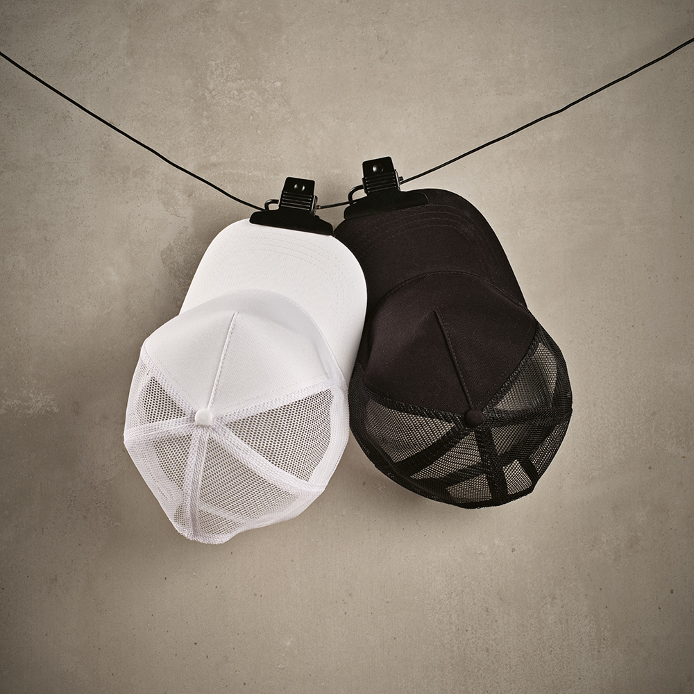 Nokamüts 5 Panel on valmistatud ümbertöödeldud puuvillast ning sellel on hingav rPET-võrgust tagapaneel ja viiepaneeliline disain. Sellel on reguleeritav rPET-kinnitus ja see on eraldi pakitud biolagunevasse kilekotti.