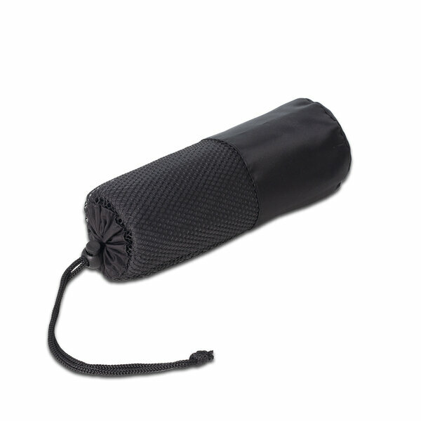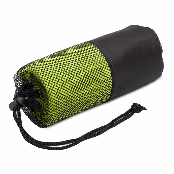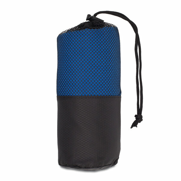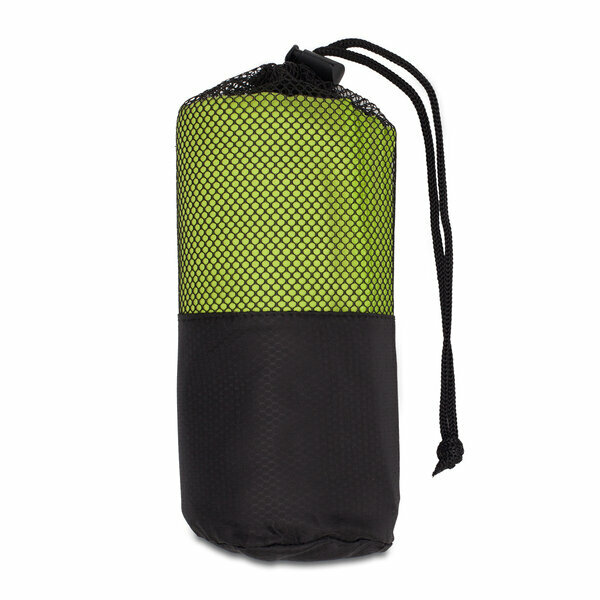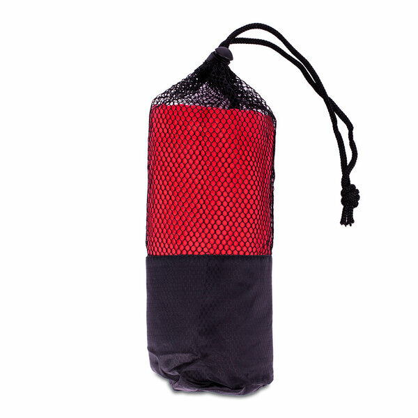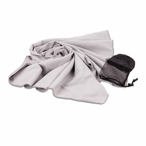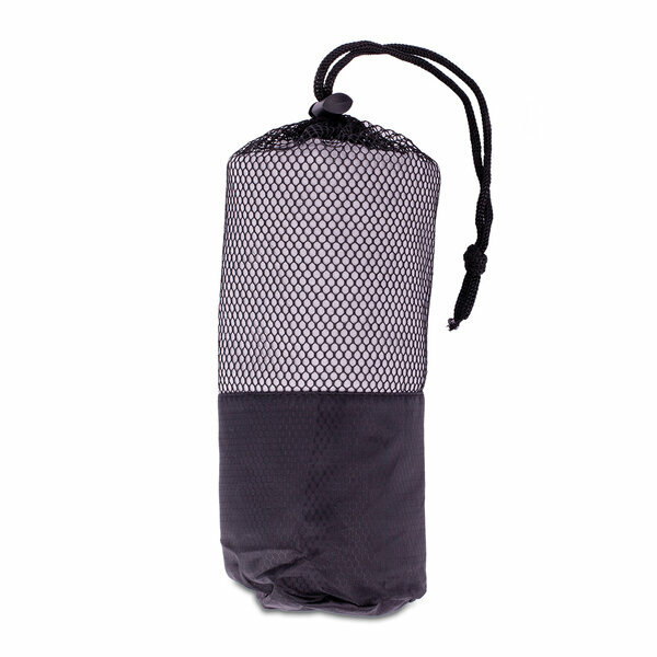 Mikrofiibrist spordirätik võrgust kotis. Rätikul on hea veeimavus ja see kuivab kiiresti. Pakitud nöörkinnisega võrgust kotti.