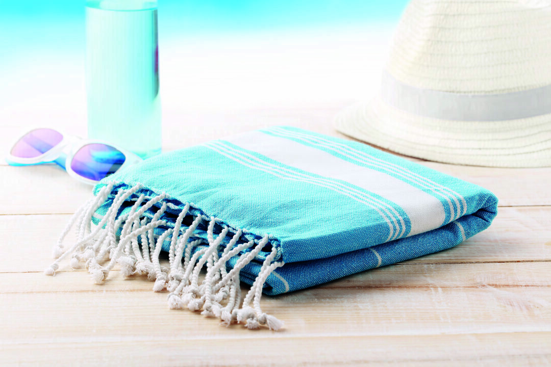 Rannarätik 90 x 170 cm on kerge hamam-stiilis puuvillane tekk, kaaluga 180 g/m².
